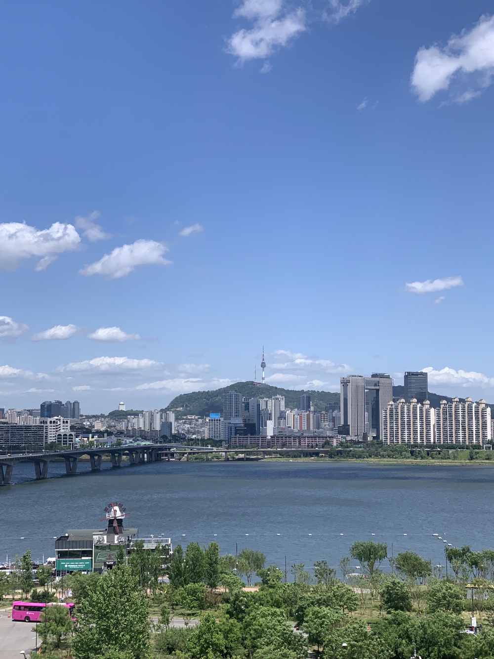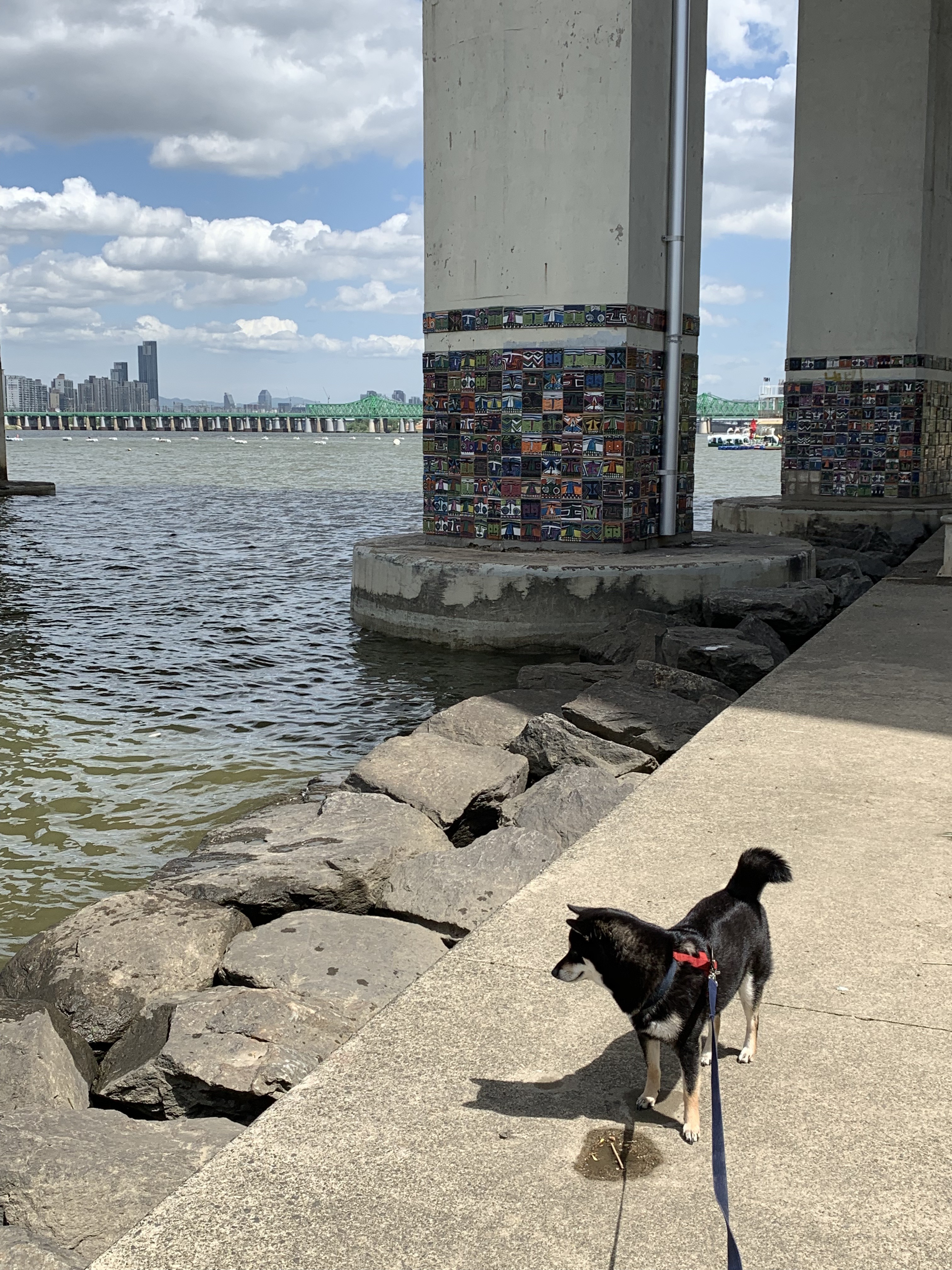 요 며칠은 미세먼지 없이 남산타워도 잘보이고 하늘이 열일하고 있습니다. 좋근여! 강아지들 데리고 산책하기 더없는 날씨입니당! 최근 한강공원에서 다른 시바견을 만났는데 인사하던 중 이빨을 보이고 그래서 넘나 놀랬습니다... 그에 비하면 우리 자루는 구김 없는 성격이라... 밥 달라고 멍! 할 때 빼곤 짖지 않아여. ㅋ