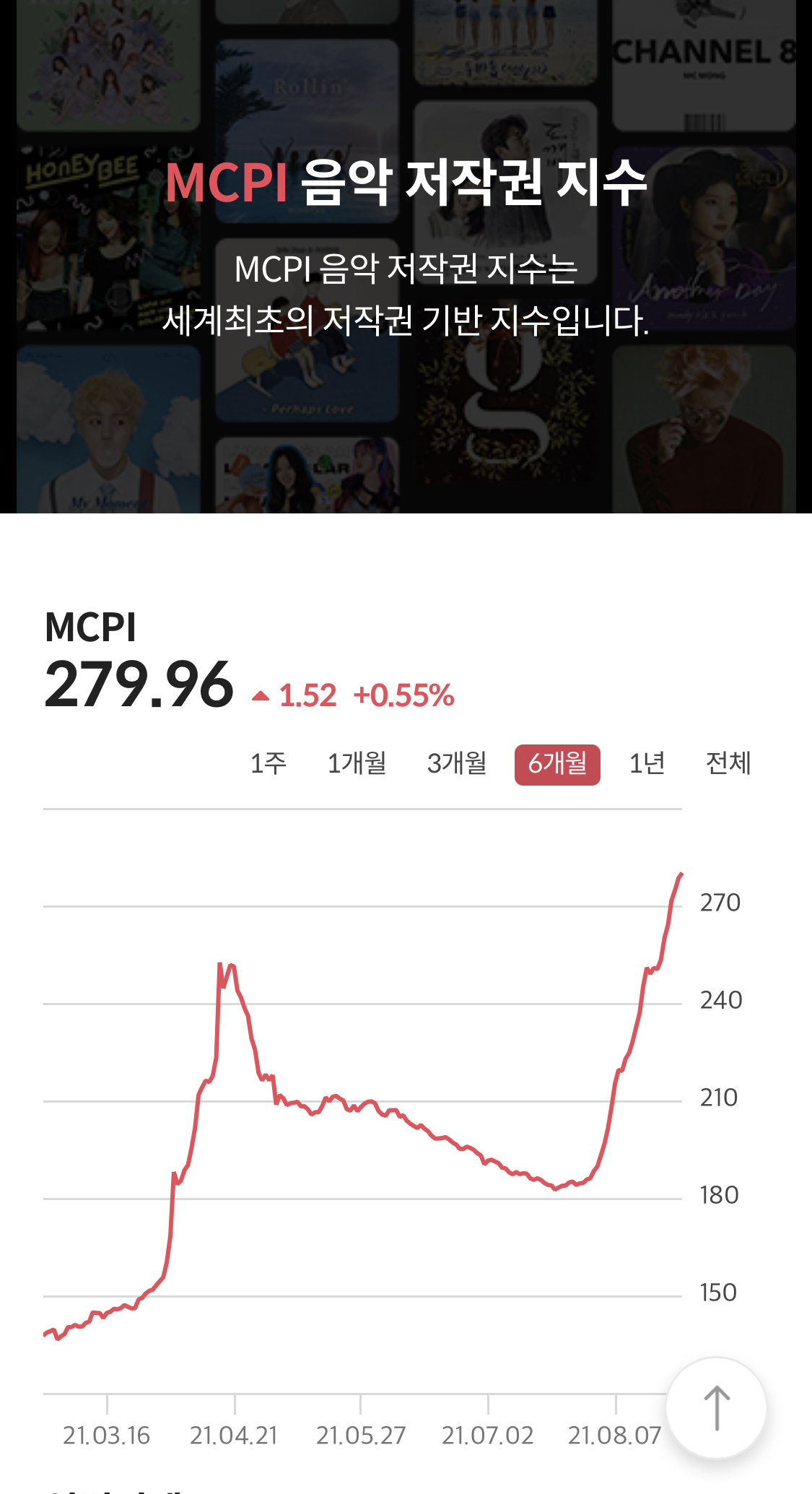 나름 '음악저작권 지수'라는 것도 있음. 표를 보면 칠월말부터 지수는 전고점을 뚫으며 상승 즁.