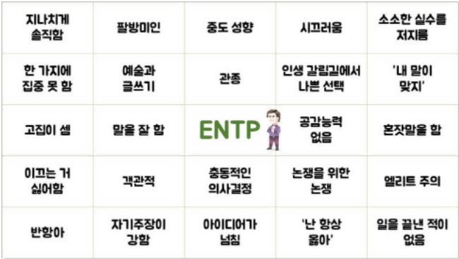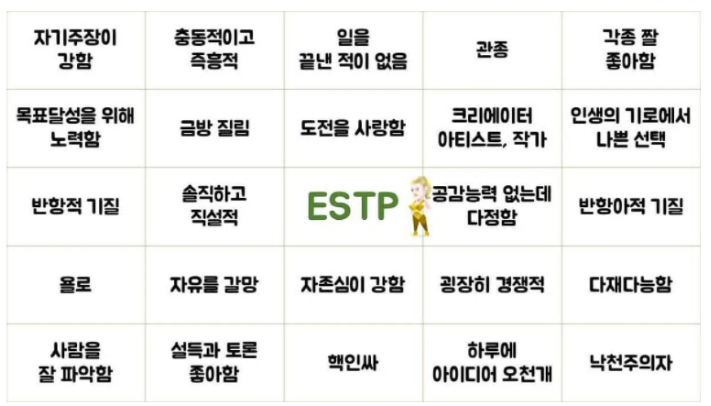 다만, 재미로 보는 거죠 재미로. 그래도 ESTP와 ENTP 성향의 사람을 만나게 된다면 우선 사람 조심하는 것도 필요해 보이기도...