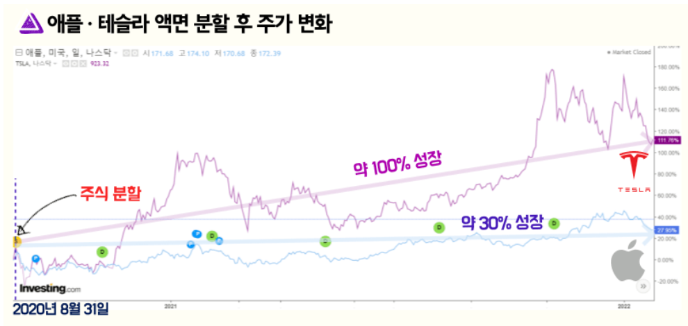사실, 액면분할때마다 나오는 말이지만 액면분할 자체가 기업의 내재가치에 아무런 변화도 일으키지 못한다라고 하지만 역사(기록) 는 말한다! 액면분할을 한 종목은 대부분 이후 중장기 상승효과를 냈음.