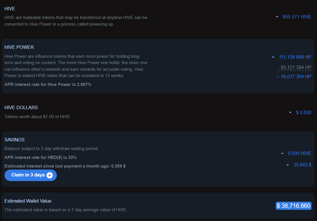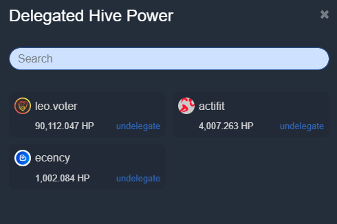 그리고 9만 HIVE를 곧 바로 leo.voter에 delegation(임대) 했다. leo.voter 에서는 임대의 대가로 APR 16% 정도의 분배금을 leo라는 코인으로 매일 주는데 (13~14불 정도) 이게 한달에 55만원 정도의 고정 임대 수익이 발생한다.