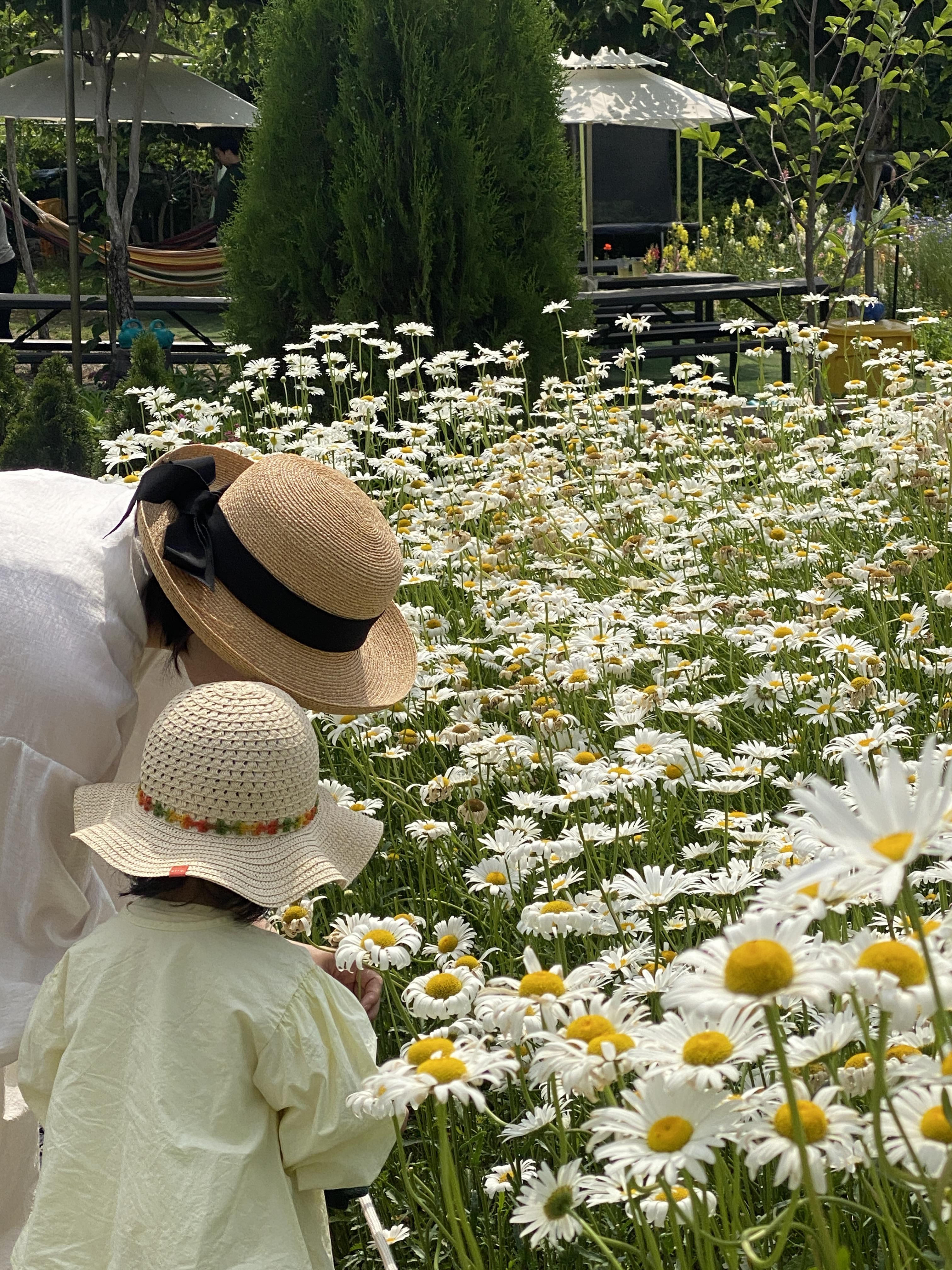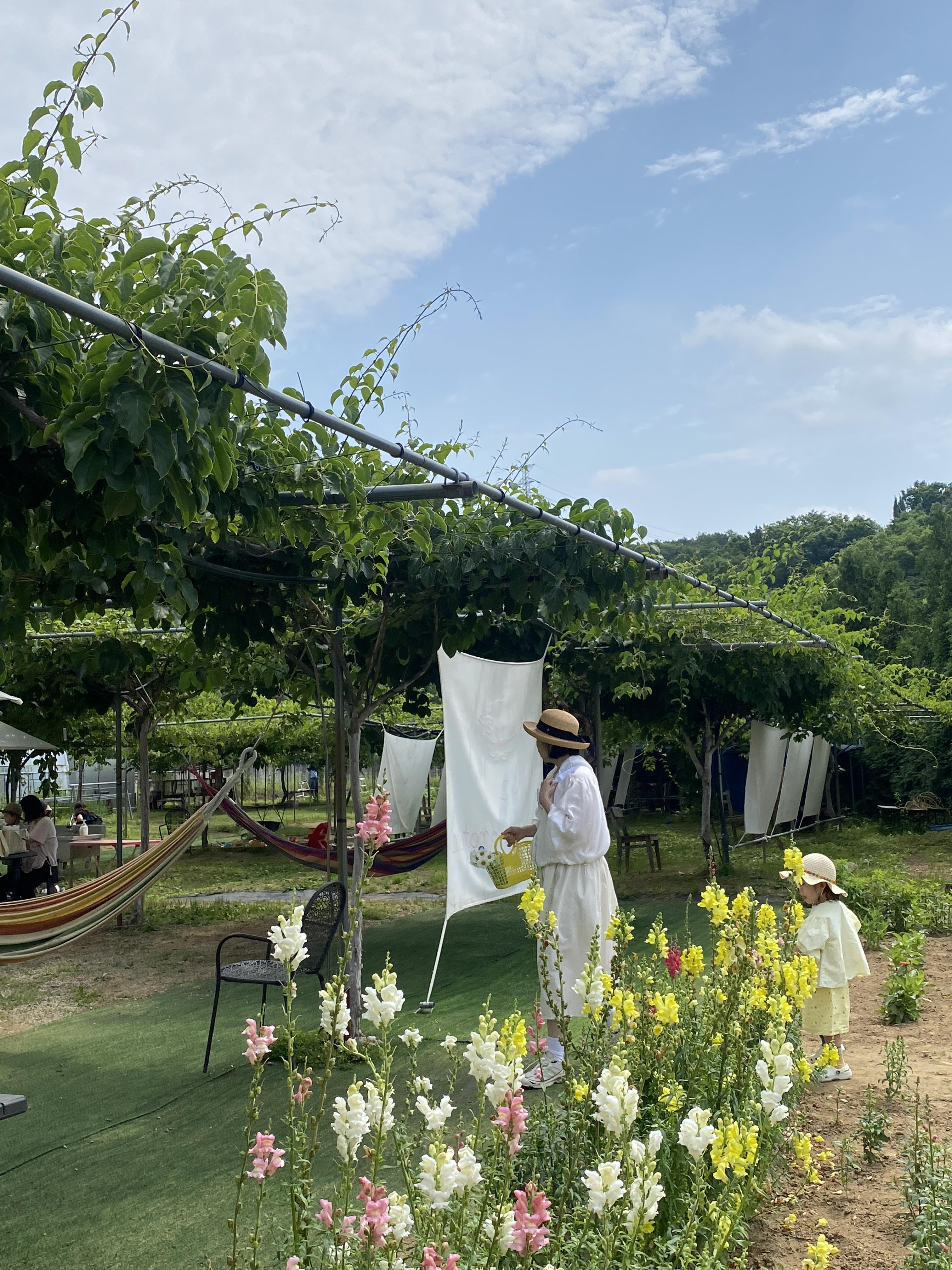 2시간 30분 정도의 - 꽃을 직접 따서 꽃꽂이도 하고 꽃사탕도 만들고 귀여운 아기 앞치마에 꽃물도 들여보는 과정이었는데, 시간내내 즐거워하는 것 같아서 나도 좋았음. 그 외에도 농장에서 키우는 귀여운 강아지와 장난감 물고기 낚시터가 마음에 들었는지 딸아이는 떠나는 걸 매우 아쉬워 함. 아 또, 해먹에 누워 보더니 편안했는지 매우 마음에 들어하고 나오려고 들지 않았음.