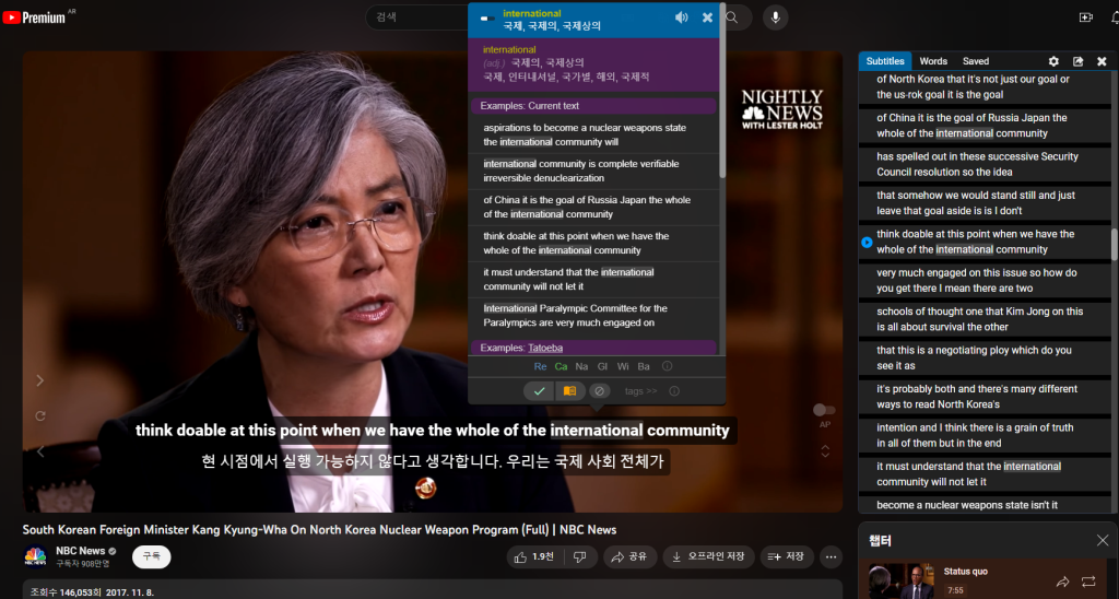 아래에 보이는 유튜브 클립을 한방에 영어학습 프로그램 그 이상으로 만들어 줍니다. 리스닝/쉐도잉 등 영어학습에 최적화 시켜주는 보물같은 앱이라 볼수 있죠.