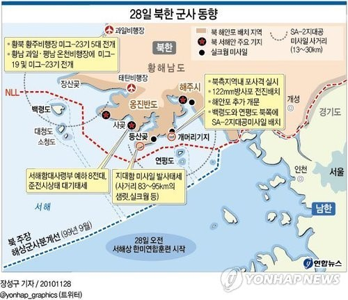 뉴스속보로 나와서 놀라서 봤는데... 북한군의 서해안 포사격이 남한 영해가 아닌 NLL북방 완충지역 떨어졌다고 '했제와 그랬제'로 호들갑 중인 국방부로 보입니다.