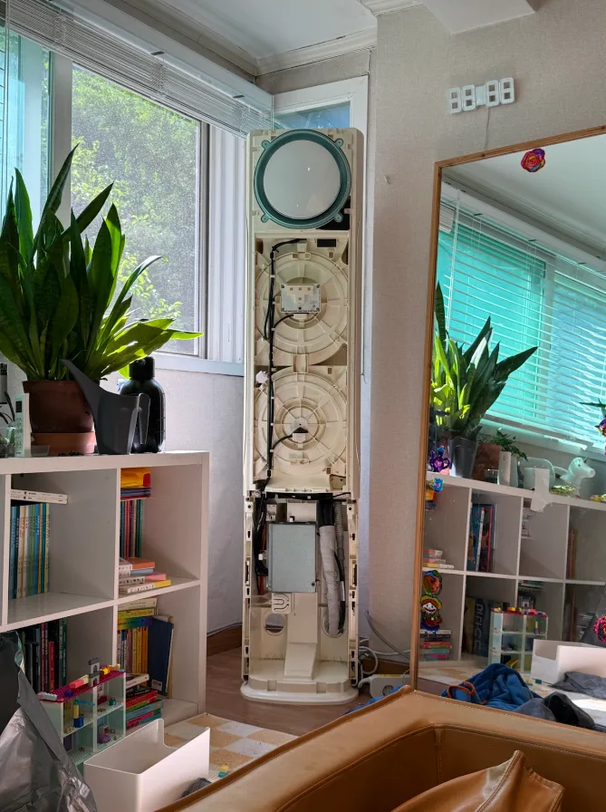 청소하다가 넘나 힘들어서 신형에어컨은 청소도 쉽다 던데 하는 생각에 에어컨을 새로 살까 하다가 그래도 멀쩡히 잘되는 걸 두고 새로 사는 건 낭비라는 생각에 마음을 잡고 청소를 마쳤습니다. (혹시 청소를 하시려고 하는 분이 있다면, 용기를 가지십시오.)