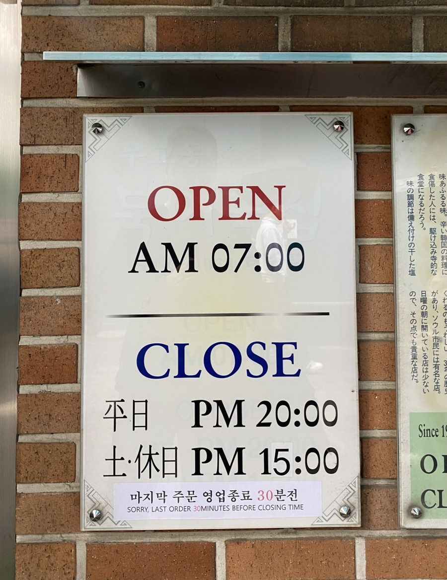 식당의 연륜이 느껴지는 입구 분위기입니다. 10분쯤 기다려서 입장합니다. 메뉴도 북어국 딱 하나, 그리고 주문하자마자 바로 나옵니다.