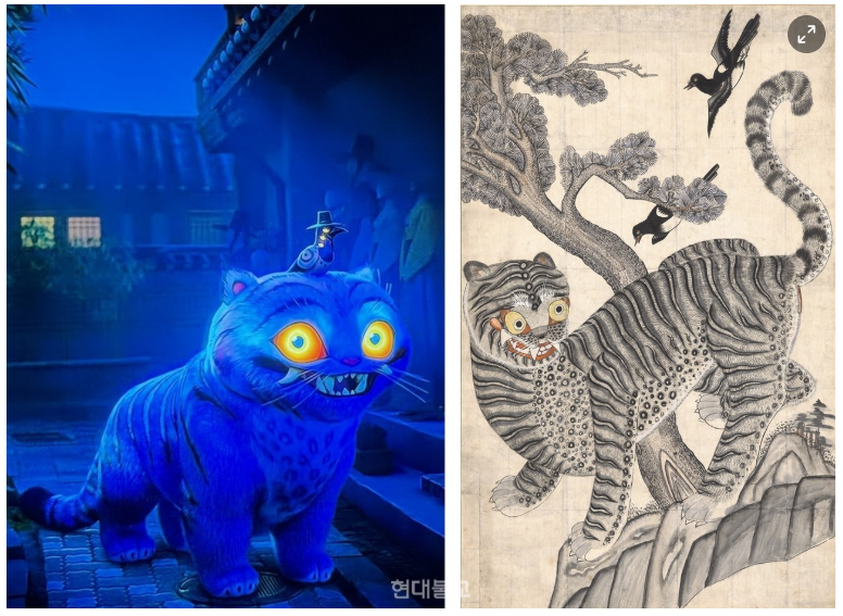 이 열풍 속에서 단연 돋보이는 존재는 귀여운 씬스틸러, 호랑이 '더피’와 까치 '수지’입니다. ‘사자 보이즈’의 멤버 진우의 심부름꾼으로 등장하는 이들은 조선 후기 민화 호작도(虎鵲圖)를 모티프로 탄생한 캐릭터들로, 작품의 인기에 힘입어 각종 상품화까지 이어지고 있습니다.
